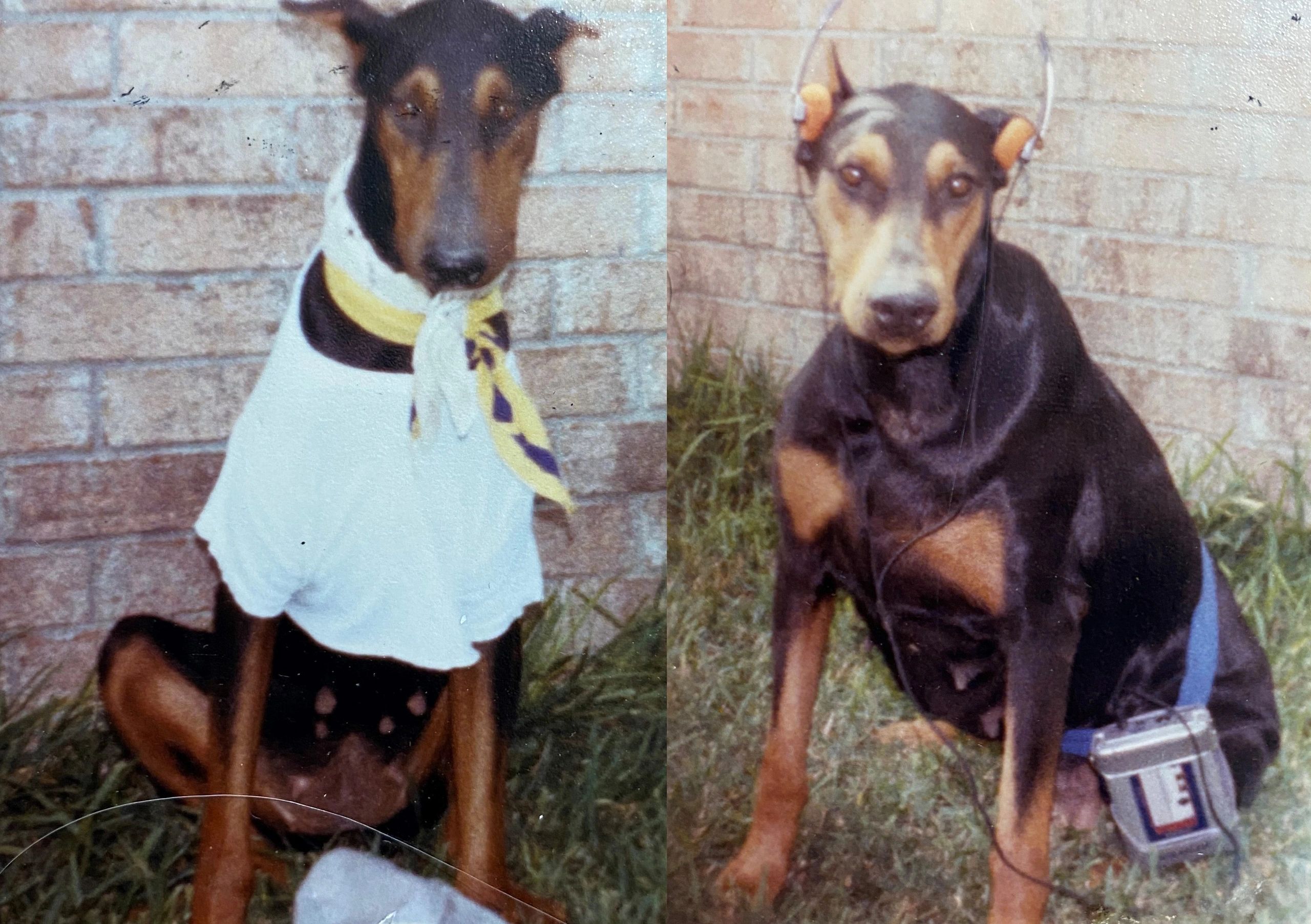 My hairdresser had two Dobermans and the female was pregnant. He wanted to sell her and not have the problem of taking care of and getting rid of the puppies. We were excited at the thought of raising a litter of puppies. Sheba, our new Doberman, was a sweetheart. In only a month, she delivered twelve Doberman puppies. That was crazy fun! We built a shed and a dog run for when they were a little older and customized it so that Sheba could go out the doggy door, but the puppies could not. I think we started to take the newspaper, just to have enough papers for the puppy pen!
